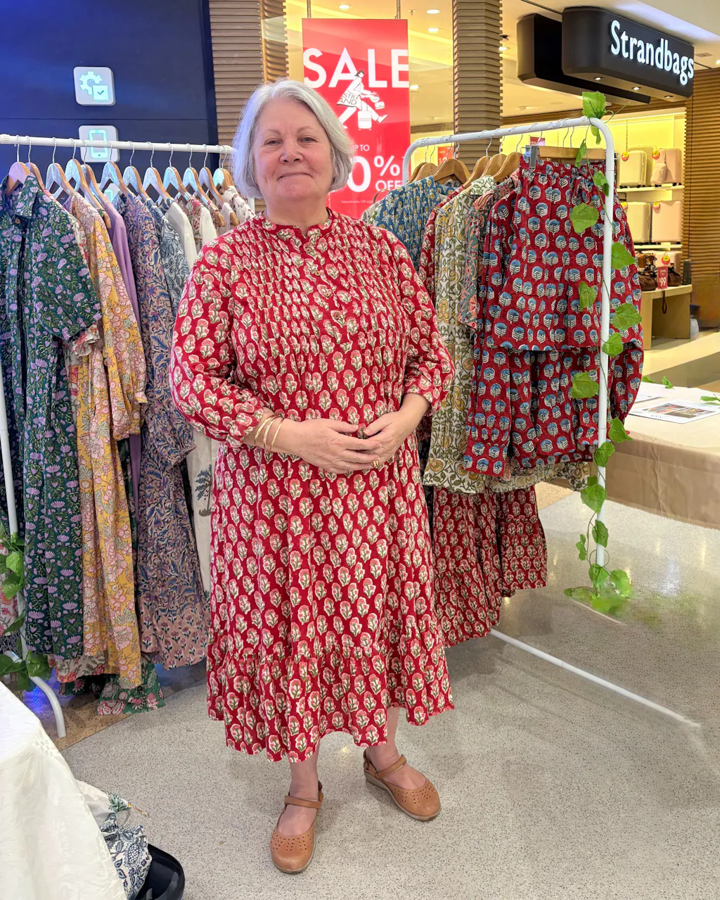 Beautiful cotton designs from Woven Visions. A local designer. These beautiful designs don’t need any ironing, just give them a good shake and place them on a hanger to dry. Simple